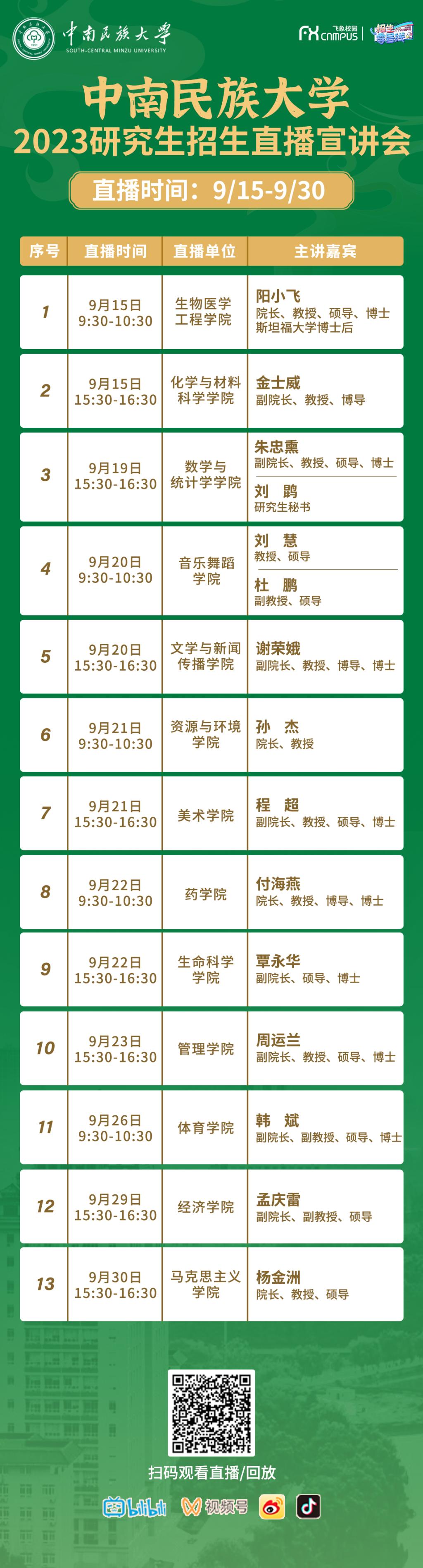 中南民族大學2023年研究生招生線上系列宣講會之五------文學與新聞傳播學院專場(9月20日 15:30)