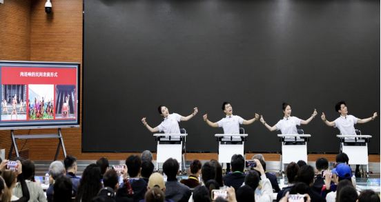 中國研究生“文化中國”兩創大賽的是中國研究生創新實踐系列大賽主題賽事之一,是系列大賽中首個文科主題的創新實踐公益性賽事。研究生院高度重視,積極響應并精心組織音樂舞蹈學院多個作品、課程參加大賽初賽申報,最終由音樂舞蹈學院尕藏教授、華毛措教授、孟祥宇老師擔任指導教師,2023級舞蹈教育方向研究生曾張誠作為主講學生,以及胡靖、李林達、趙恩菥、楊雯雯作為展示學生的《美育浸潤——湖北民間地域特色中學課桌舞》課程在全國的107門課程中脫穎而出,成功晉級全國總決賽。