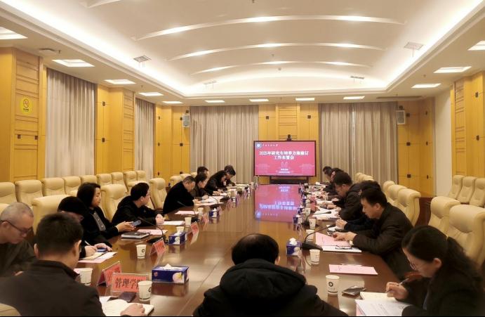研究生院負責人從修訂背景、指導思想、重點任務和工作要求等四個方面對2025年研究生培養方案修訂工作進行了詳細解讀,并強調了修訂工作中的重點和難點。與會人員圍繞培養方案的課程設置、學分要求、實踐教材(案例)編寫、必修環節等內容展開了深入討論。