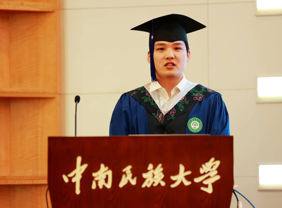 教師代表、學校“十佳青年教師”陳旅翼教授為2022屆畢業生送上祝福。“人生應該像青黛,在氤氳中營造希望;人生就應該像阿膠,在炙熱煎熬中得到凝練;人生就應該像石膏,在烈火焚燒中追逐輝煌;人生更應該像熟地,在九蒸九曬中得到升華”,他祝愿所有畢業生將民大藥學院的基因深植血脈,堅持守正創新秉承“萃物求精、煉性達仁”院訓精神,勤求博采、開拓創新,為我國醫藥產業發展、人民健康事業發展做出新的更大貢獻。