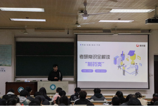 3月25日晚,藥學院在11棟200教室舉辦考研輔導講座。本次講座邀請湖北新文道考研輔導機構盧曙老師主講,學院2020級全體本科生參加。