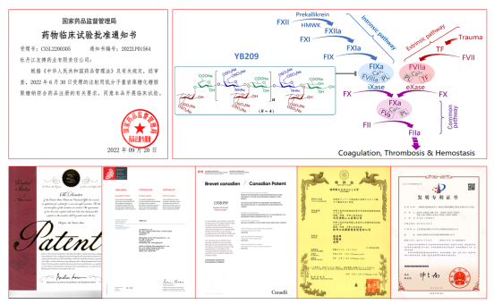 血栓栓塞性疾病是全球首位致死原因,抗血栓藥物治療的臨床價值重大,但現有臨床用藥均存在導致嚴重出血的缺陷??鼓幨桥R床防治靜脈血栓的柱石,盡管新型抗凝藥物研發不斷取得積極進步,但如何避免嚴重出血危險仍未取得突破性進展。天然來源的巖藻糖化糖胺聚糖(fucosylated glycosaminoglycan,FG)具有抑制內源性因子X酶(iXase)相關的強效抗凝活性,趙金華課題組以天然FG為先導化合物,基于其系統的化學和藥理學研究,并經細致的成藥性分析,選擇以YB209為目標成分,聯合九芝堂下屬的友博藥業開展其新藥研發工作。臨床前研究顯示,YB209為強效和選擇性的iXase抑制劑,具有相對于現有臨床抗凝藥的顯著的低出血傾向的強效抗血栓活性特點。YB209作為新靶點(First-In-Class)抗凝藥于2021年獲得美國食品藥品管理局簽發的臨床試驗許可(IND 153593),目前在美國處于臨床試驗籌備階段。趙金華課題組收到國家藥品監督管理局簽發的藥物臨床試驗批準通知書,標志著YB209的國內臨床試驗即將展開。YB209項目具有完全自主知識產權,目前已獲得中國、美國、日本、歐盟、加拿大、澳大利亞等國家或地區授權的國內/國際專利19項;相關研究中取得的部分學術成果已發表于PNAS、J Biol Chem、Thromb Haemost、Eur J Med Chem、Carbohyd Polym、Pharmacol Res、Biomacromolecules、Int J Biol Macromol、Mar Drugs等學術期刊(已發表相關學術論文36篇)。