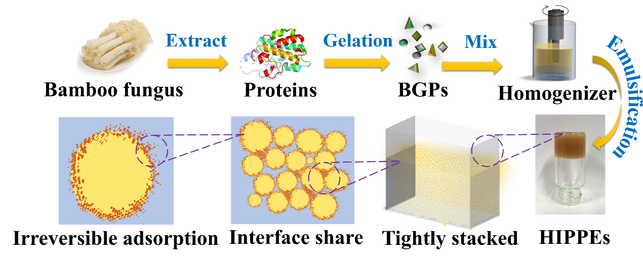 高內相Pickering乳液(HIPPEs)因種類組成豐富、制備過程簡單、穩(wěn)定性突出及功能多樣性引起了研究人員的廣泛關注。蛋白質種類繁多、來源廣泛、生物安全性高、結構性質可調控,是HIPPEs穩(wěn)定劑的優(yōu)質來源。目前已有大量報道利用動物界和植物界來源蛋白質開發(fā)新型綠色HIPPEs穩(wěn)定劑,然而真菌來源的蛋白質一直未被重視。因此,有必要驗證真菌蛋白質開發(fā)成各類HIPPEs穩(wěn)定劑的潛力,從而擴大蛋白基HIPPEs穩(wěn)定劑的來源與種類。