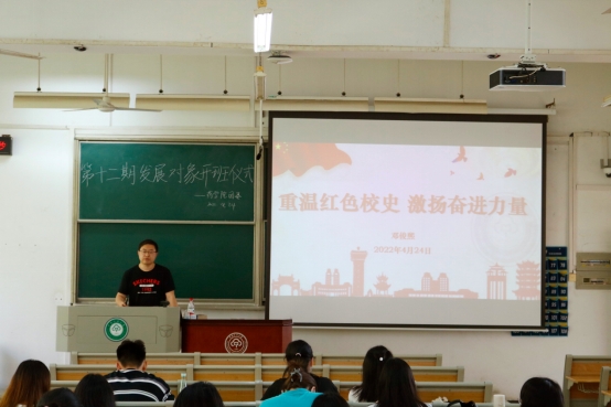 4月24日,藥學(xué)院第十二期發(fā)展對(duì)象培訓(xùn)開班儀式暨第一、二次授課在11-312教室進(jìn)行,學(xué)院全體發(fā)展對(duì)象參加。