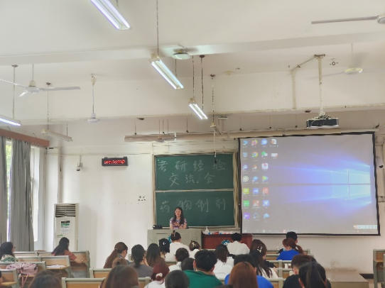 會上,劉浩天、劉聰、肖丹、王佳佳等4名考研成功的畢業生就考研院校選擇、備考方法、復習策略及心態調整等方面進行交流與分享,陳旅翼、任永申兩位老師為考研學生現階段如何合理規劃和精準定位等問題提供了具體的實施方案和策略。