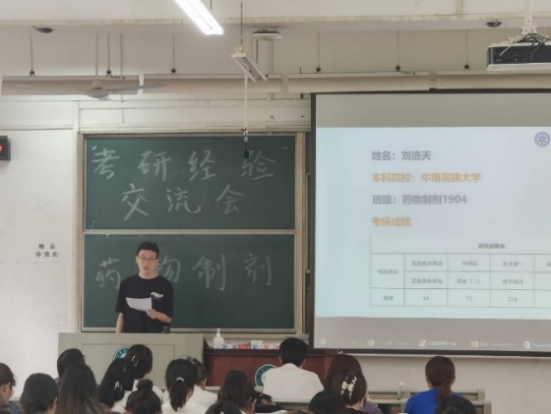 藥物制劑系始終將學習經驗交流會和考研經驗交流會納入到人才培養的例行工作中,每年4-5月份組織優秀畢業生面向低年級同學開展考研經驗交流會, 10-11月開展由保研學生主講的學習經驗交流會。這些活動的開展取得了良好的效果,為藥物制劑專業學生就業及升學奠定了良好基礎。