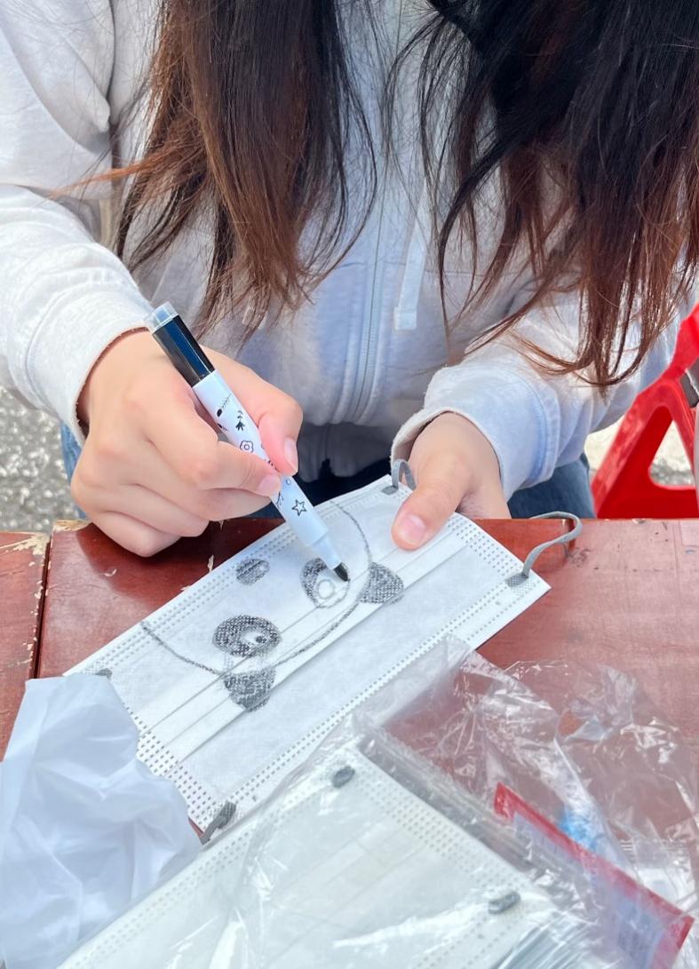 活動(dòng)以“擁抱挫折,悅納自我”為主題,以戶外擺臺(tái)形式開展,現(xiàn)場(chǎng)設(shè)有“心靈寄語”、“疊疊樂與心里話”、“口罩彩繪”、“跳方格”、“猜句傳遞”等五個(gè)環(huán)節(jié)。在“心靈寄語”環(huán)節(jié)中,同學(xué)們先在便利貼上寫下對(duì)他人的祝?;蚧貜?fù)他人的話語,再隨機(jī)抽出一張他人寫好的祝福送給自己,大家通過紙條對(duì)話的方式,在陌生人充滿善意的語句中汲取到前行的力量;“疊疊樂與心里話”環(huán)節(jié)中,同學(xué)們需小心翼翼地抽出木塔上的小木條,并回答小木條上對(duì)應(yīng)的心理小問題,在游戲問答中引發(fā)大家對(duì)自我認(rèn)識(shí)的思考;“口罩彩繪”環(huán)節(jié)中,同學(xué)們充分發(fā)揮自己的想象力,在口罩上畫出喜歡的圖樣,這一環(huán)節(jié)象征了“疫情結(jié)束,口罩之下是我們的笑臉”美好寓意;“猜句傳遞”環(huán)節(jié)中,同學(xué)們通過團(tuán)隊(duì)協(xié)作,合力猜出正確答案,深刻體會(huì)到齊心協(xié)力、合作共贏的樂趣。