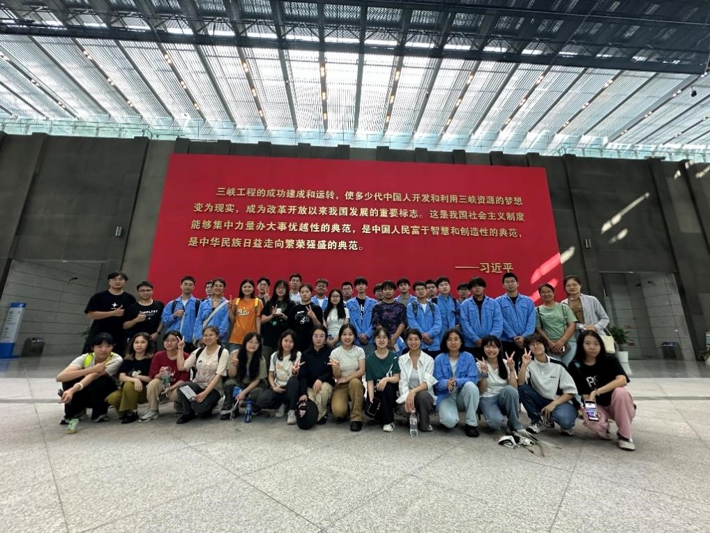 在中國長江三峽集團有限公司實習期間,師生們參觀了壇子嶺、中堡島、三峽工程博物館、截流紀念園、葛洲壩樞紐航道工程、中華鱘研究所等地,認真聽取了三峽梯調中心教授級高工王玉華老師關于“三峽水庫水情調度運行”的講座。實習采用現場教學和課堂教學相結合的方式,讓學生們更加清晰地了解三峽大壩的構造、工作原理以及其在防洪、發電、航運等方面發揮的巨大作用。