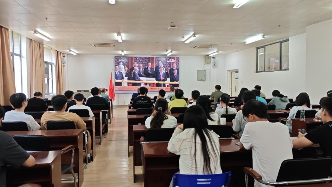 上午9時,閱兵儀式正式開始。學院黨委書記劉子元,黨委副書記、院長孫杰,黨委副書記陳鵬冰,副院長徐志高、葉恒朋、張俊宏等教職工代表,與在校本科生、研究生代表齊聚學院261會議室,通過大屏幕共同收看閱兵直播盛況。現場氣氛莊嚴肅穆,師生們全神貫注,隨鏡頭回顧中國人民浴血奮戰的抗戰歷程,深切感受新時代中國軍隊的威武雄姿。與此同時,居家同學積極響應,通過電視、網絡直播等渠道同步收看,共赴這一莊嚴時刻。