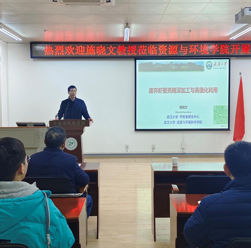 2024年12月4日下午,武漢大學(xué)施曉文教授應(yīng)邀為我院師生作了題為《廢棄蝦蟹殼精深加工利用》的學(xué)術(shù)報(bào)告。報(bào)告由院長(zhǎng)孫杰教授主持,學(xué)院師生積極參加此次講座。