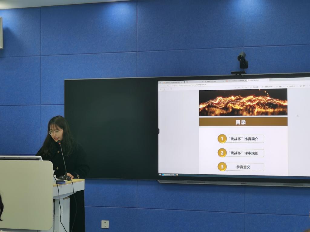 2月24日晚,資環學院團委研究生會學術與創新實踐部負責人柯璇在10號教學樓214教室,為即將到來的湖北省第十四屆“挑戰杯”大學生課外學術科技作品競賽作宣講動員,幫助研究生全體研一、研二同學了解“挑戰杯”參賽流程、注意事項等事宜。