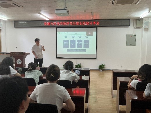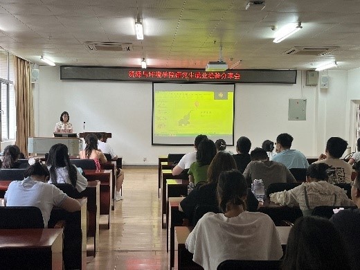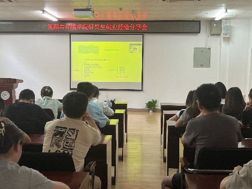 為深入貫徹黨的二十大精神和委屬事業單位改革發展會精神,破解學生就業難問題,推動研究生就業工作高質量開展,6月1日上午,資環學院于13號樓261報告廳舉辦研究生就業經驗分享會。本次分享會邀請了陳金寶、尹智明、石樂琪和李德芬娜4位優秀的2020級畢業研究生分享求職及面試經驗,活動由院研究生會主席王之主持,全體2021級、2022級研究生參與了本次活動。
