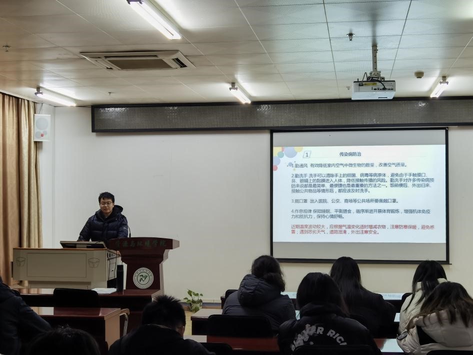 2101班班長向同學們科普傳染病預防知識。資環學院供圖