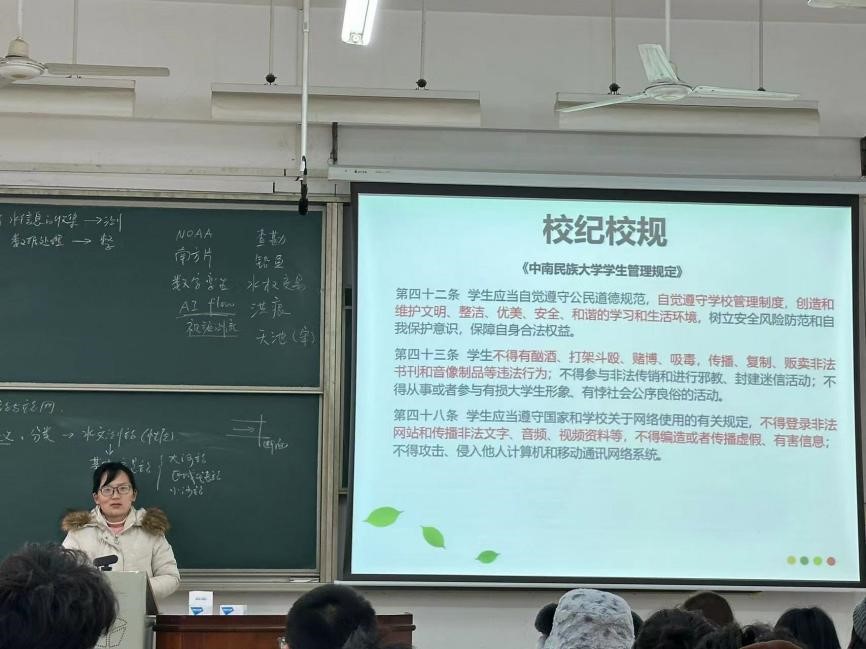 水文2201班班導師講解校紀校規。資環學院供圖