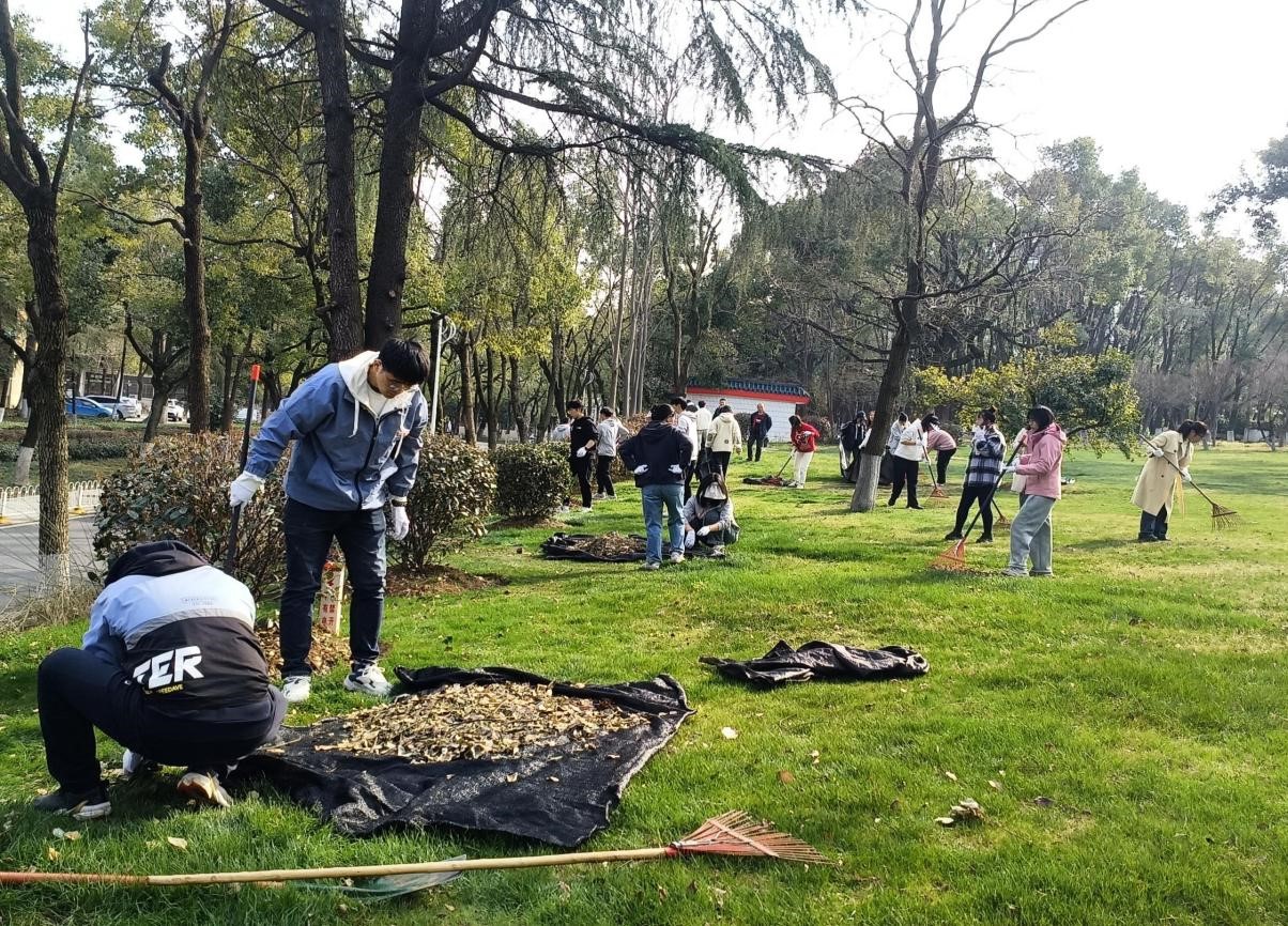 隨后,在園區負責人科普基礎知識并強調注意事項后,同學們以小組為單位排隊領取鐵鍬、水桶等工具,分頭清理樹葉、松土澆水,現場分工明確,有條不紊。