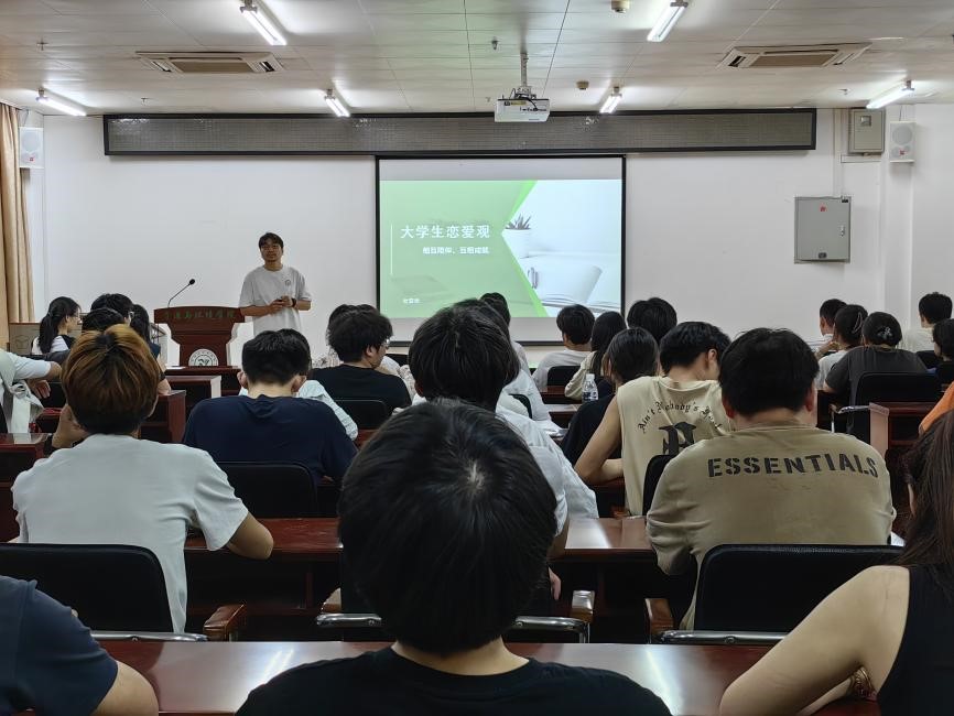 為提高大學生心理健康水平與心理健康素養,培育自尊自信、理性平和的健康心態,引導大學生正確處理戀愛過程中的心理問題,培養正確的戀愛觀,5月25日,在全國心理健康日到來之際,資源與環境學院于13棟教學樓261會議室舉辦“大學生戀愛觀”專題講座,邀請學院杜亞光老師主講,2022級、2023級各班心理委員和80余名學生代表參加講座。