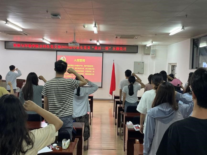 活動最后,黃晴老師帶領全體黨員重溫入黨誓詞,幫助畢業生黨員進一步樹牢黨員意識、筑牢信仰之基,時刻牢記黨員身份,不忘入黨初心。