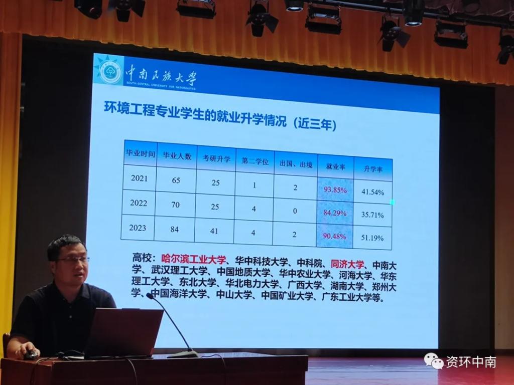 環境科學專業教研室主任丁耀彬老師站在學科發展的方向上,從專業性質、專業發展歷程、師資力量、實驗教學平臺、升學與就業六個角度為同學們詳細介紹了環境工程專業。丁老師指出,環境科學專業的目標是培養德智體美勞全面發展,具有扎實的專業知識儲備的,能在政府、企業與教學科研單位從事環境保護及相關工作的專業人才。