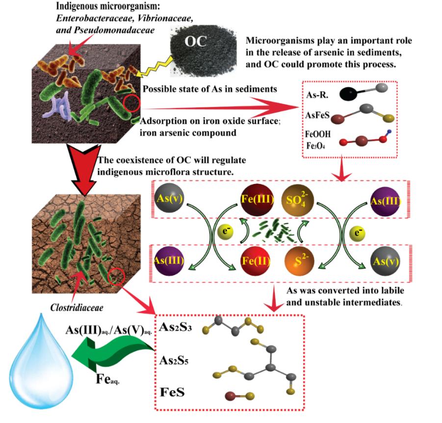 已有研究表明地表水-地下水相互作用下,區域內施肥、畜禽養殖、季節性灌溉、農村面源污染等人類活動排放的有機質與地下水中砷存在潛在關聯性,但有機質對砷釋放及遷移影響的關鍵過程與作用機制尚不明確。針對這一科學問題,改論文揭示了淺層高砷地下水系統中有機質介導下砷釋放及遷移的關鍵過程與作用機制。
