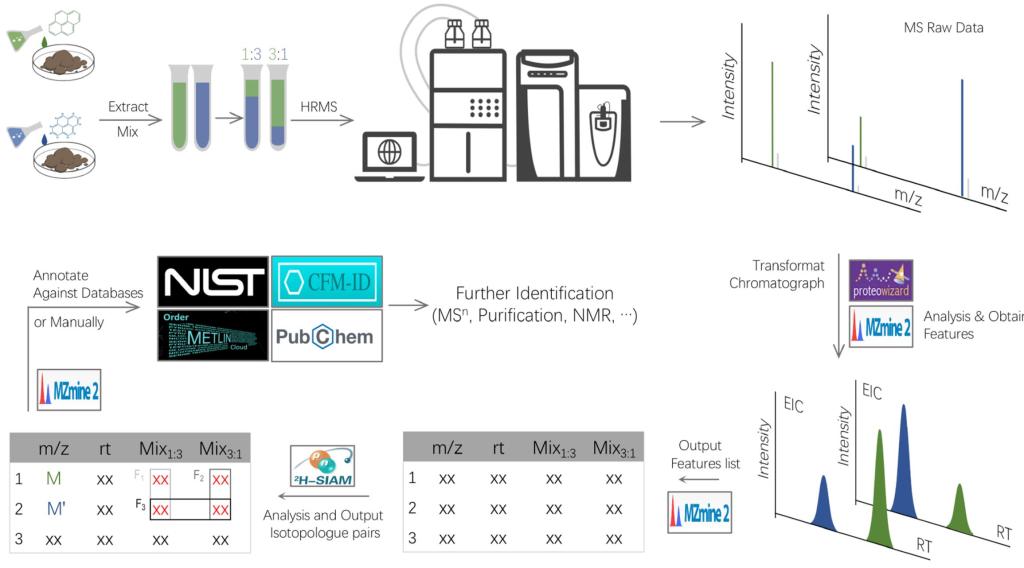 環(huán)境中的有機污染物在非生物和生物因素的作用下會發(fā)生氧化、降解、代謝、結合等反應,所生成的物質可以統(tǒng)稱為轉化產物。穩(wěn)定同位素標記被廣泛應用于解析小分子的轉化產物,然而其在環(huán)境中的應用較少。主要原因在于13C標記化合物昂貴,且現有的基于同位素標記的非靶向分析算法存在一定缺陷。陳柯副教授針對此問題,開發(fā)了基于氘標記的非靶向分析工作流程及其配套的算法,并將其應用于芘的環(huán)境轉化產物分析。結果表明,該工作流程及算法具備適應性廣,經濟和高效的特點,在生命、醫(yī)藥和環(huán)境領域具有廣泛的應用前景。