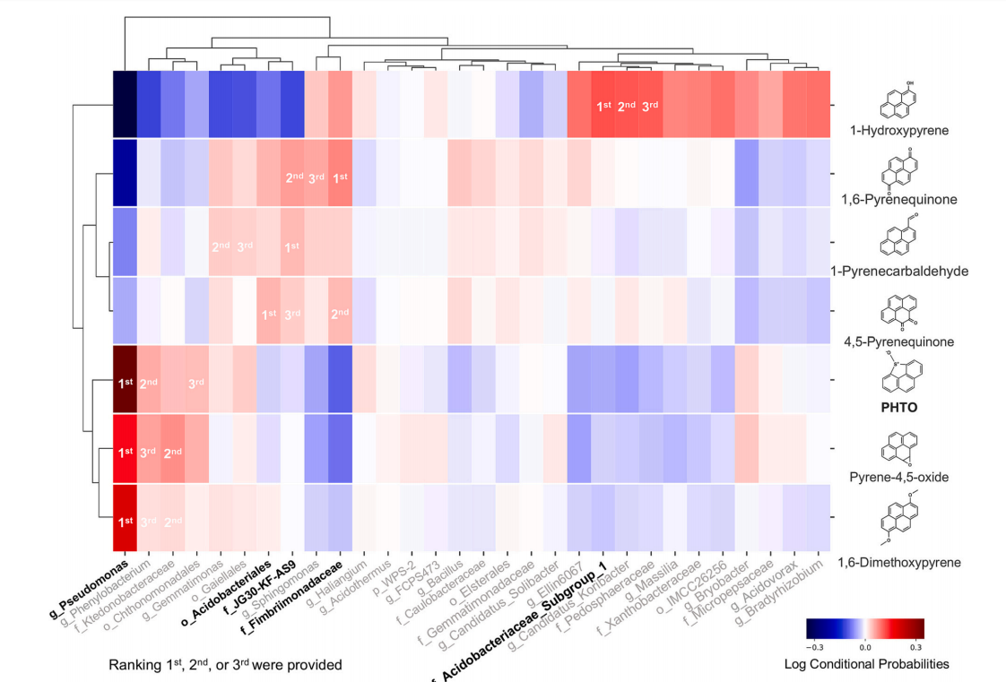 殺蟲劑、除草劑、抗生素、石化產品等人造化學物質的使用在增強人類生活質量的同時也可能對生物和環境產生有害的影響。這些化學物質在降解過程中產生的轉化產物(TPs)因可能對環境產生顯著的生態毒理效應,所以在近十年對轉化產物的研究引起了越來越多的關注。例如,多環芳烴(PAHs)在環境中普遍存在且濃度相對較高,對環境構成了重大威脅。本研究提出了一種新策略,通過結合使用2H標記的穩定同位素輔助代謝組學(2H-SIAM)和基于神經網絡的算法(即MMvec),來探索污染物(如芘)的TPs與土壤微生物群落之間的聯系。這種新策略建立的聯系已通過宏基因組研究、降解菌的鑒定和基于DNA的穩定同位素探測研究等多種方法的驗證,且其在建立聯系方面比其他方法表現更優異。