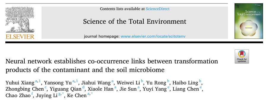 2024年3月,我院碳與環境修復團隊在環境領域權威期刊《Science of the Total Environment》(中科院一區 TOP)上發表最新研究成果:Neural network establishes co-occurrence links between transformation products of the contaminant and the soil microbiome,首次應用神經網絡分析解析微生物在污染物環境轉化過程中的作用。我院碩士研究生向宇輝為論文第一作者,陳柯副教授為論文通訊作者。
