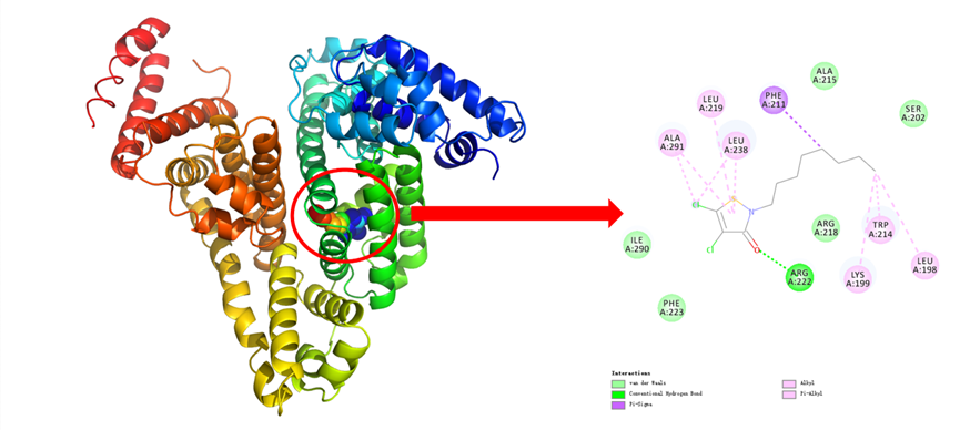 圖2. HSA與DCOIT結合的分子對接結果