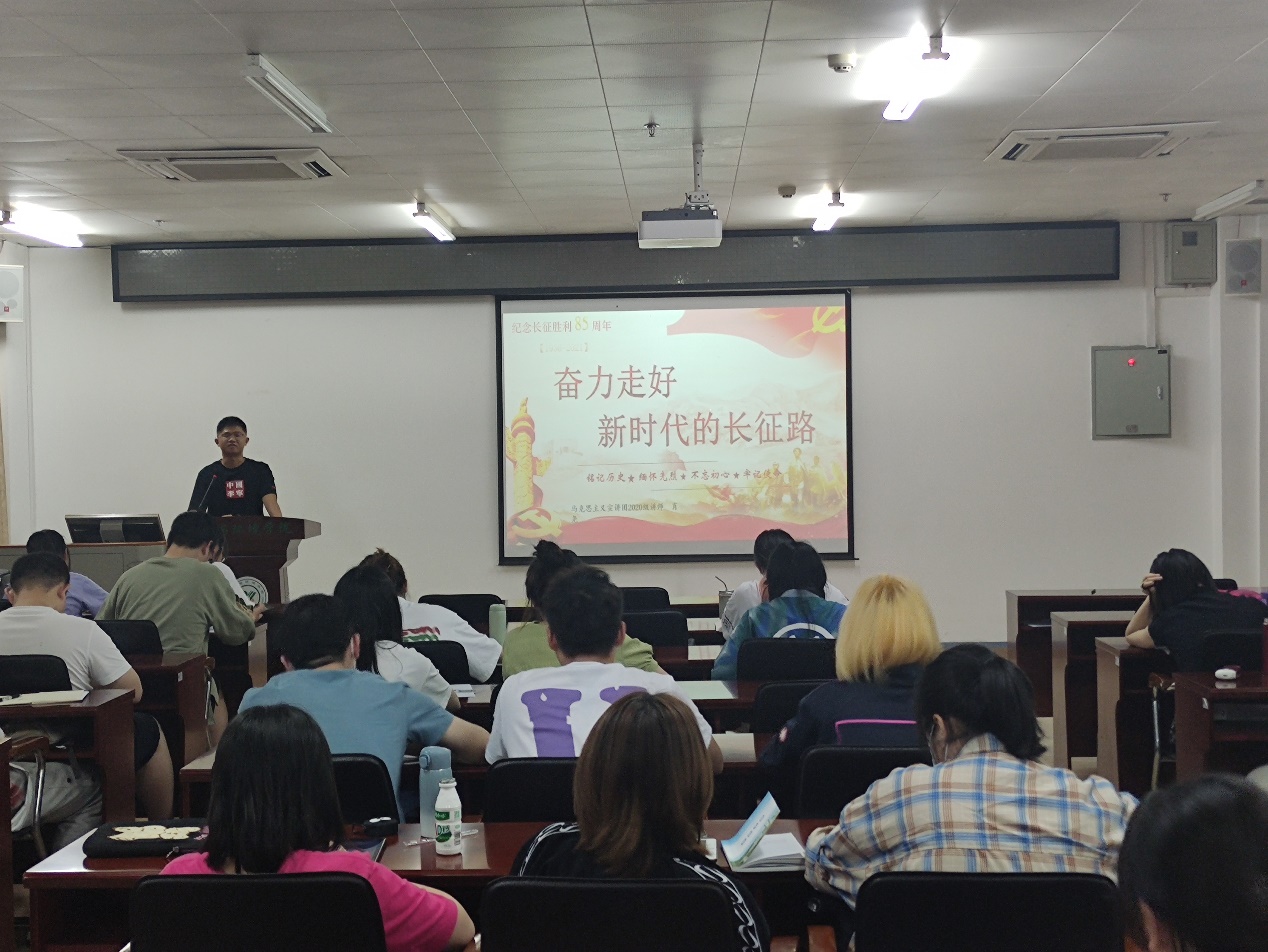 在宣講活動中,唐麗媛同學圍繞“向陽生長——百年大黨的精神成長歷程探析”為主題,介紹了黨在發展歷史進程中偉大的精神譜系,她以“延安精神”、“焦裕祿精神”、“兩彈一星精神”、“抗疫精神”為例,展現了我黨“為人民服務”的思想內核;肖堯同學圍繞“奮力走好新時代長征路”為主題,以歷史上的“紅軍長征”為切入點,表明只有讀懂長征,才能在新時代的“長征”中把握正確方向;滕香瑩同學圍繞“中共五大:刀刃向內自我革命的有益探索”為主題,介紹了中共五大對我國歷史進程的偉大貢獻,只有以史為鑒,我們才能在未來的發展中走得更正、走得更遠;趙正方同學以“百年回望:馬克思主義中國化的偉大歷程”為主題,介紹了馬克思主義在我國逐步發展中的影響和轉變,表明了我黨在這百年的奮斗歷程中,真正將馬克思主義深深根植于我國的實際之中。