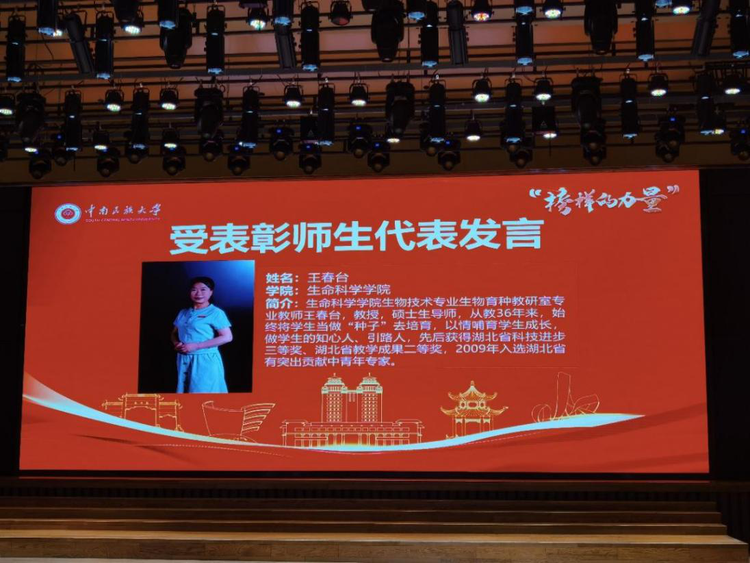 王春臺教授獲國家民委“三全育人”模范表彰。生科學院供圖